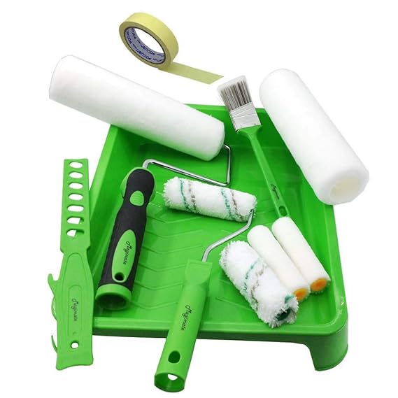 Magimate Paint Roller Kit 9 Inch 4 Inch Roller Set With Frames Cover Refills Angled Brush Paint Stick Masking Tape And A Durable Paint Tray For Professional And Diy Indoor And Outdoor