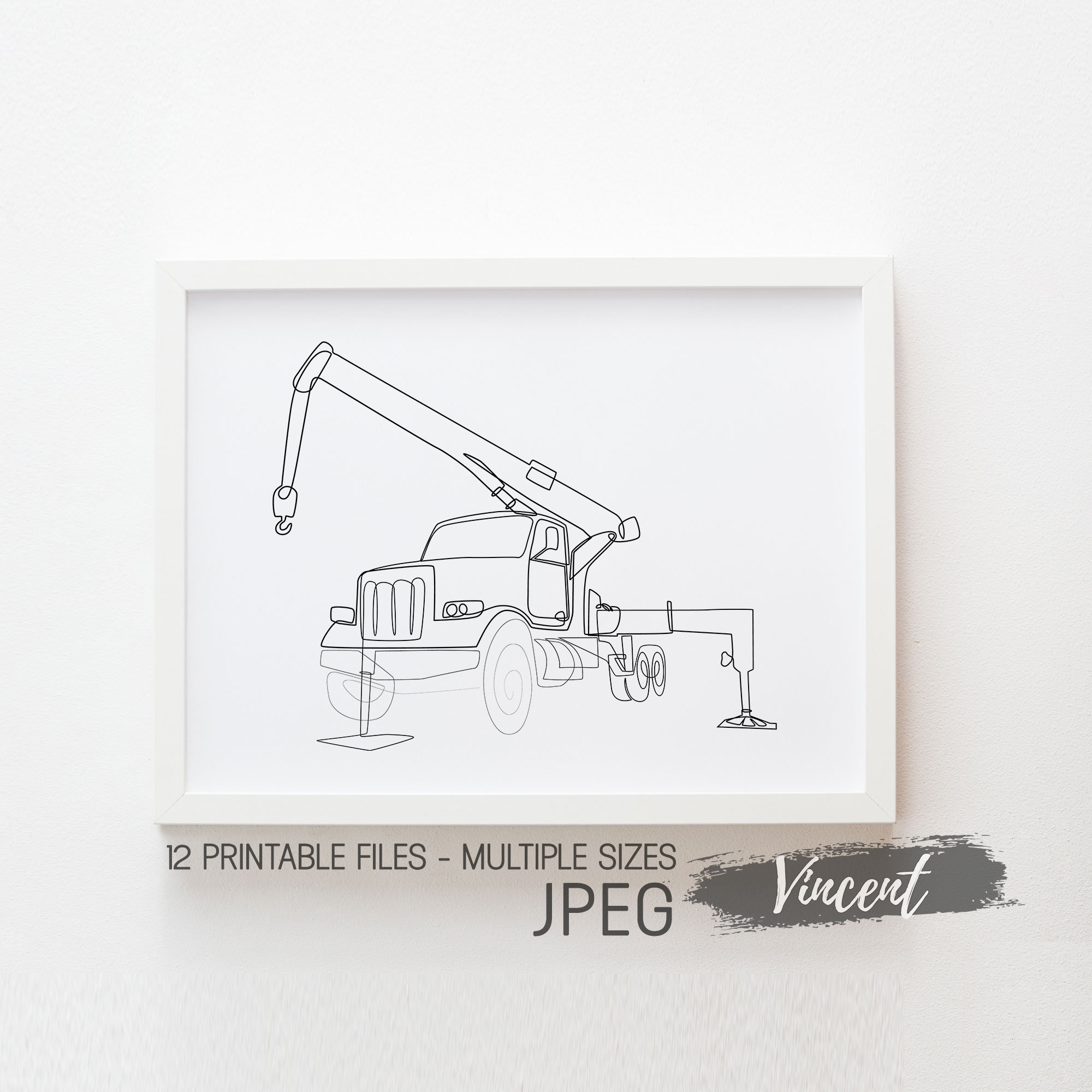Big Construction Industrial Truck Mounted Crane Line Art Etsy India